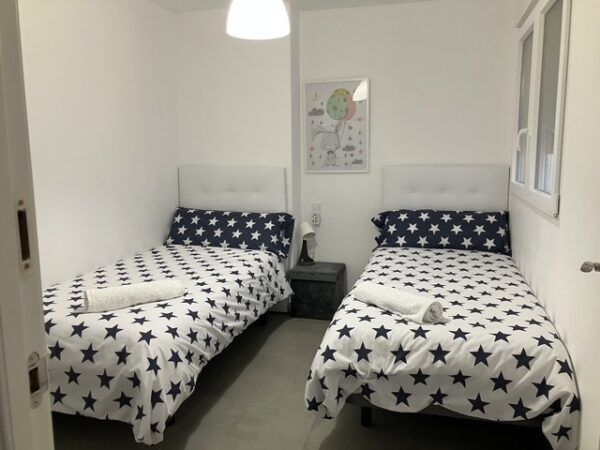 En nuestro apartamento, podrás encontrar, todo lo necesario para disfrutar de tu estancia, solo, en pareja, o en familia. Disponemos de dos habitaciones,, un dormitorio con una cama de matrimonio y otra con dos camas individuales, un baño, una amplia cocina, unida con el salón, y con una ubicación inmejorable.