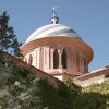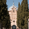La planta es de cruz latina y sobre el crucero se levanta la cúpula, verdadero hito monumental del cementerio.